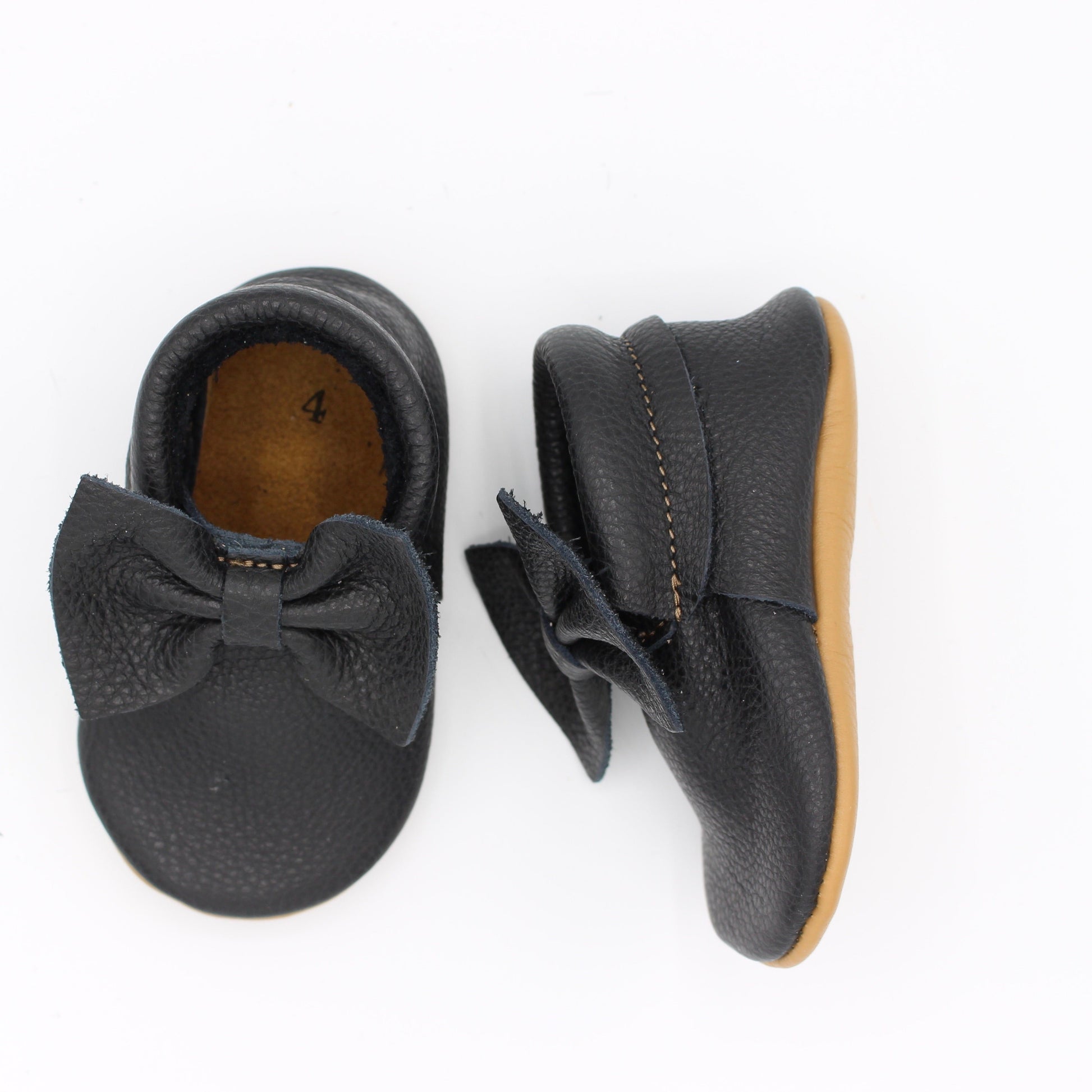 Baby Soft Sole Mocs are made with soft leather Sole Bottoms that help your child to be able to flex their foot naturally and grip as they walk.