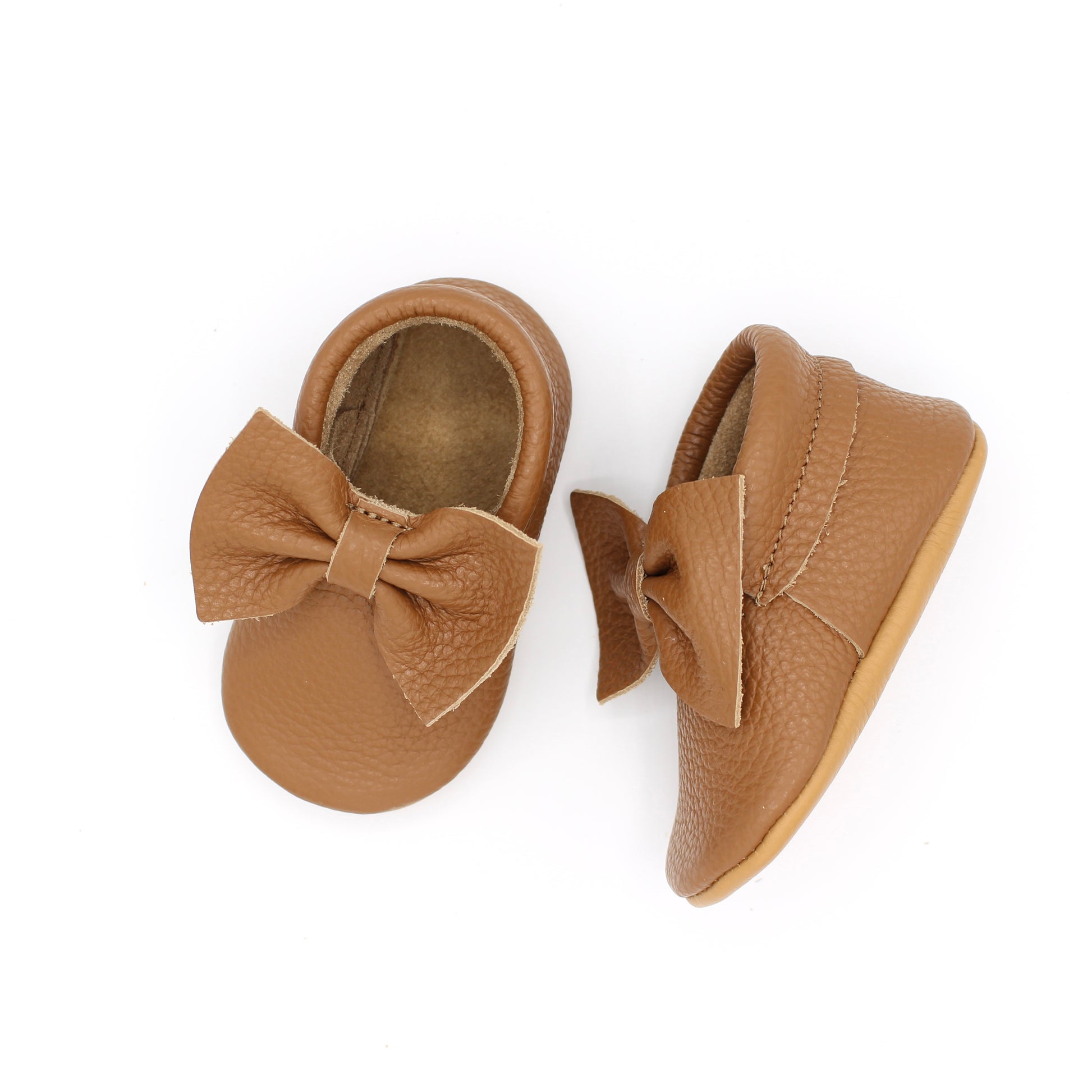 Baby Soft Sole Mocs are made with soft leather Sole Bottoms that help your child to be able to flex their foot naturally and grip as they walk.
