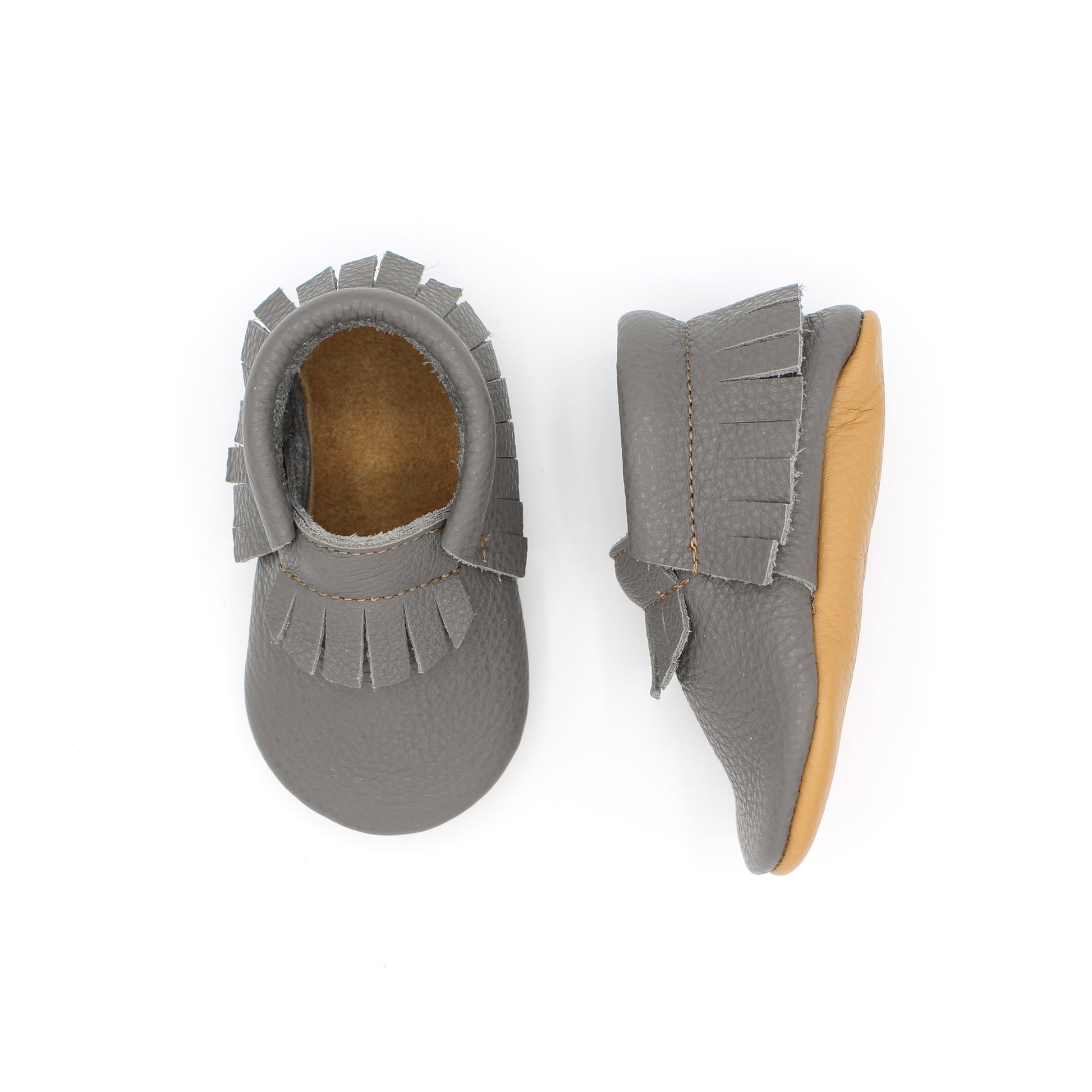 All our Mocs are handmade in Canada from the highest quality genuine leathers. All Mocs and boots have elastic in the ankle to ensure they stay on those wiggly little baby feet and you don't have to worry about their shoes falling off!