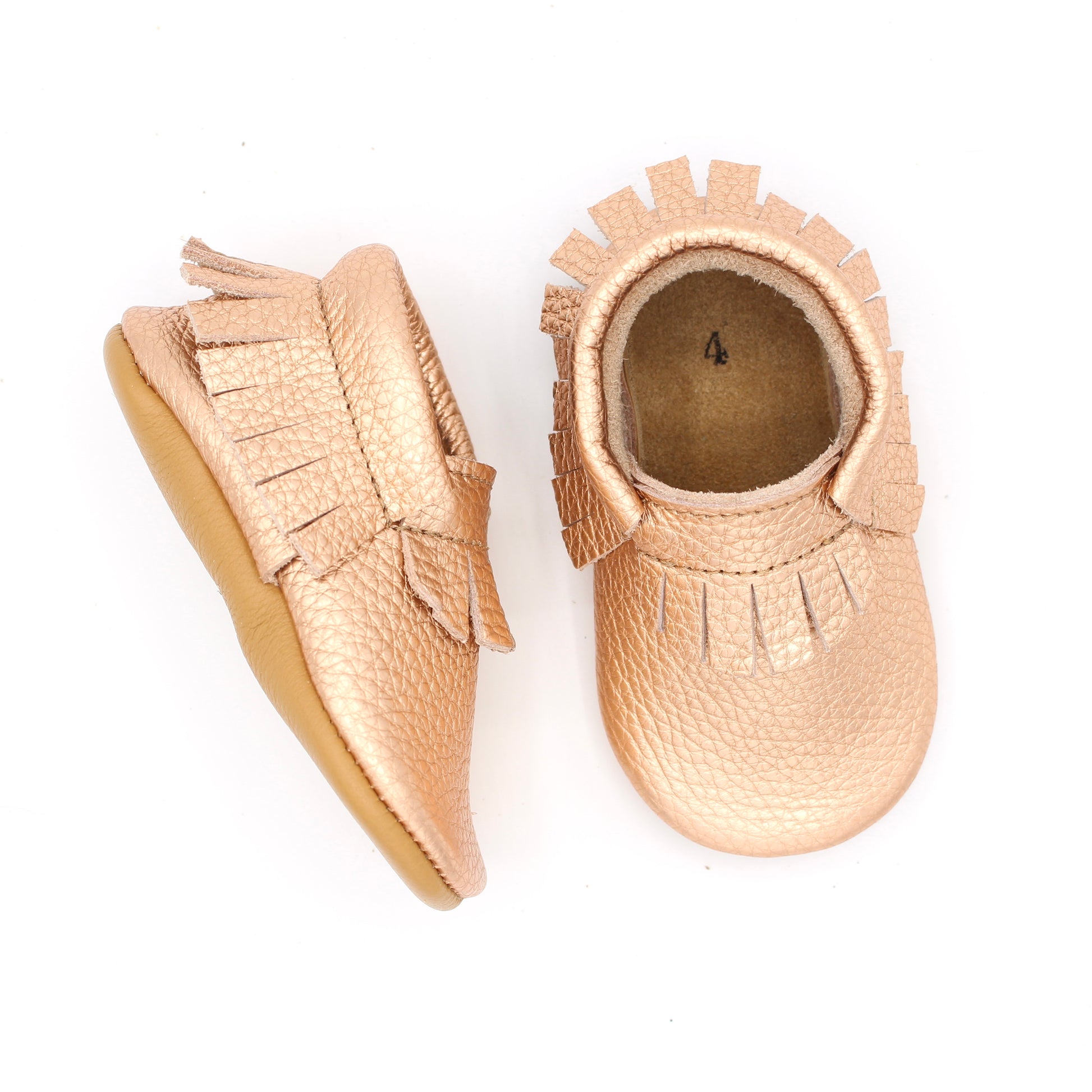 Baby Soft Sole Mocs are made with soft leather Sole Bottoms that help your child to be able to flex their foot naturally and grip as they walk.