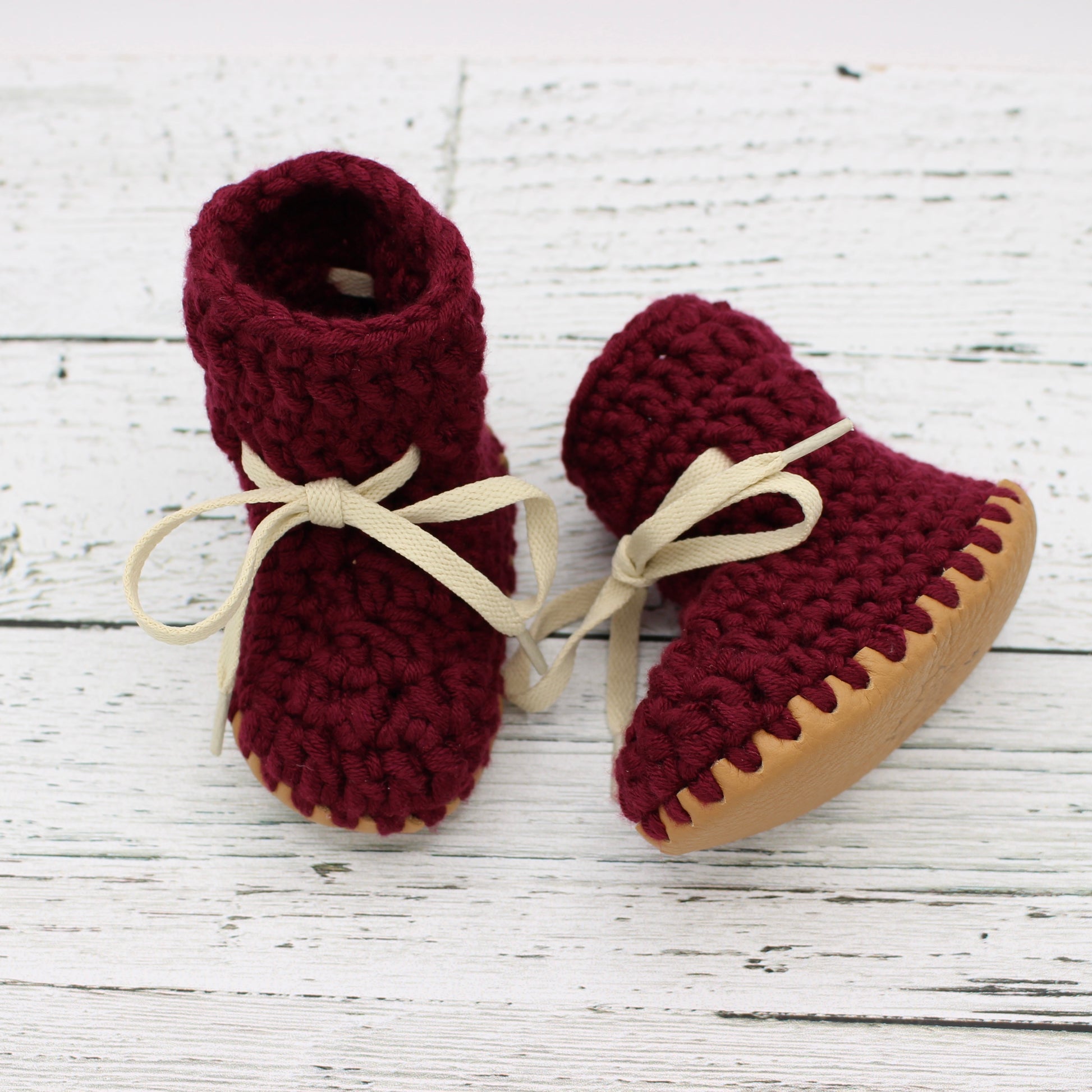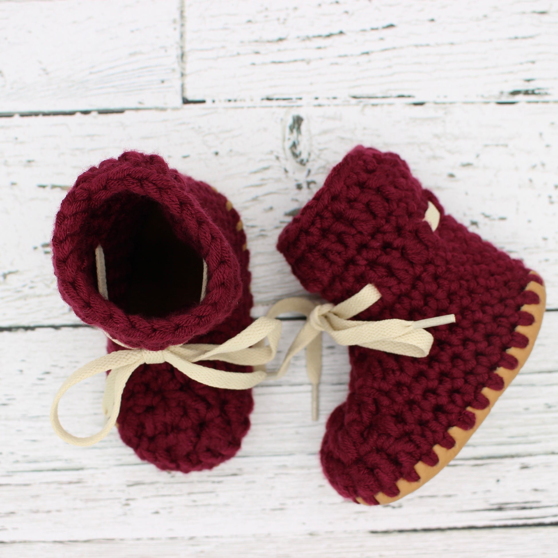 Crochet Boots are made with soft leather Sole Bottoms lined with genuine sheep insoles that help your child to be able to flex their foot naturally and grip as they walk.