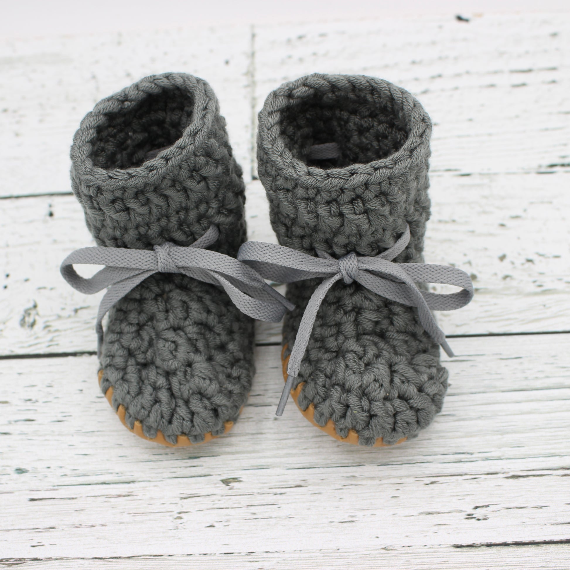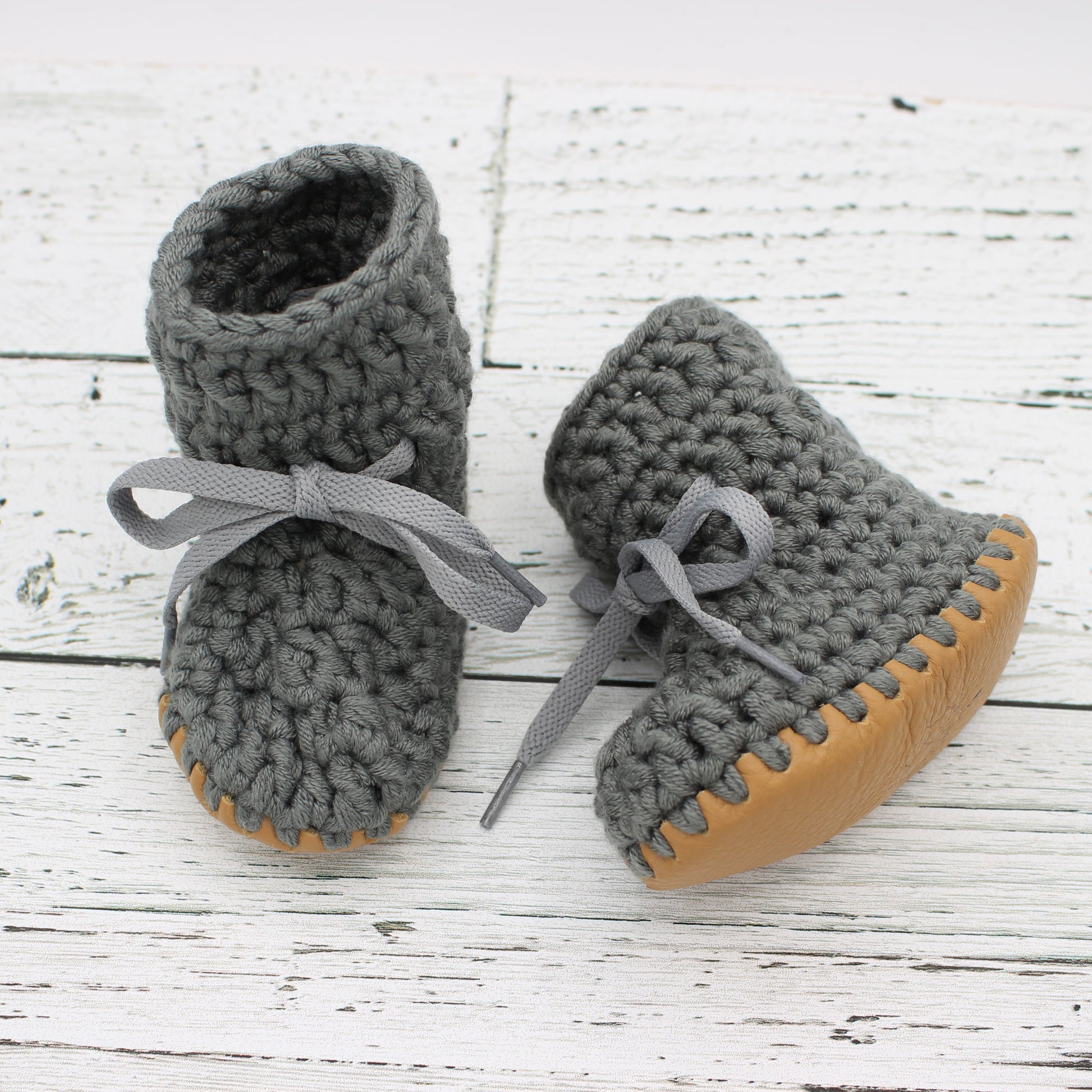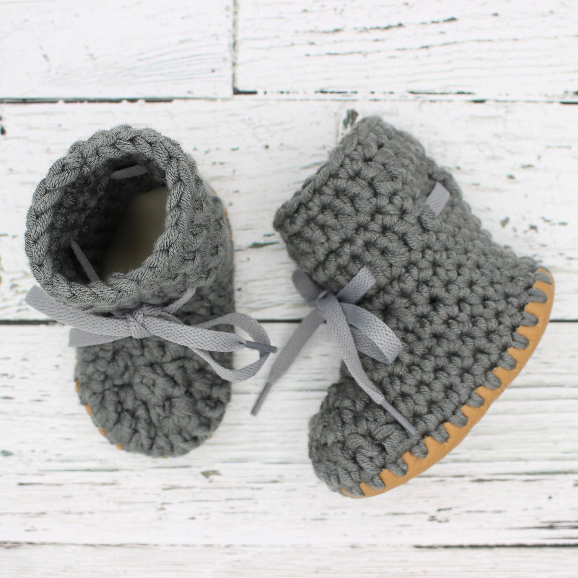Crochet Boots are made with soft leather Sole Bottoms lined with genuine sheep insoles that help your child to be able to flex their foot naturally and grip as they walk.