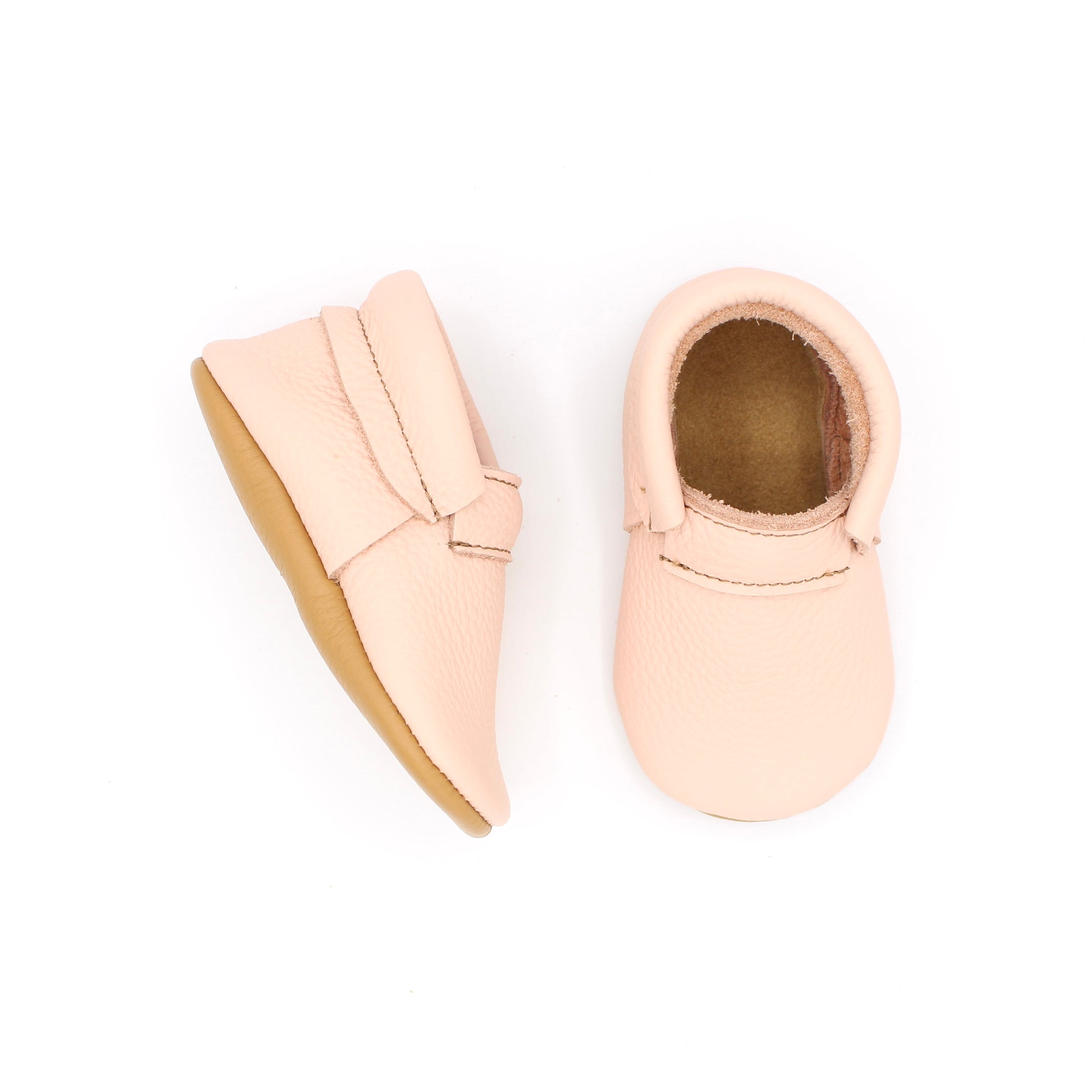 Baby Soft Sole Mocs are made with soft leather Sole Bottoms that help your child to be able to flex their foot naturally and grip as they walk.