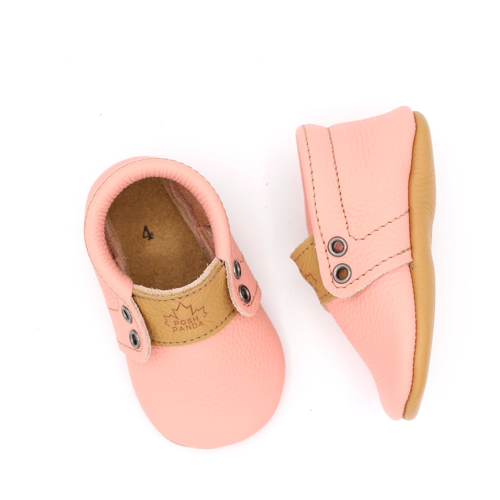 Baby Soft Sole Mocs are made with soft leather Sole Bottoms that help your child to be able to flex their foot naturally and grip as they walk.