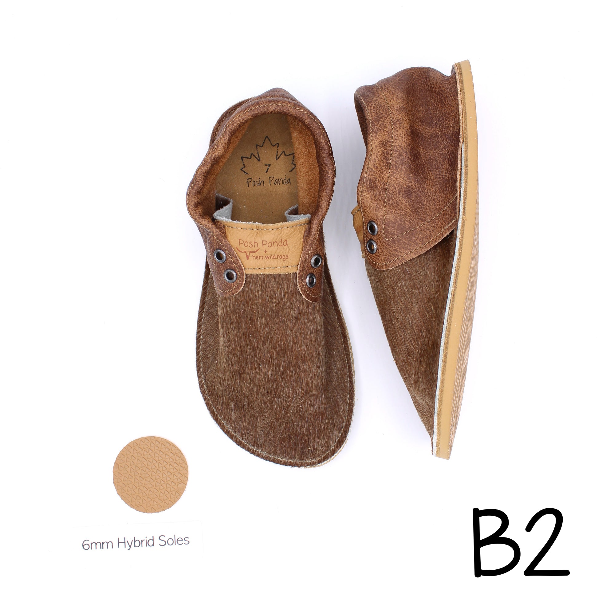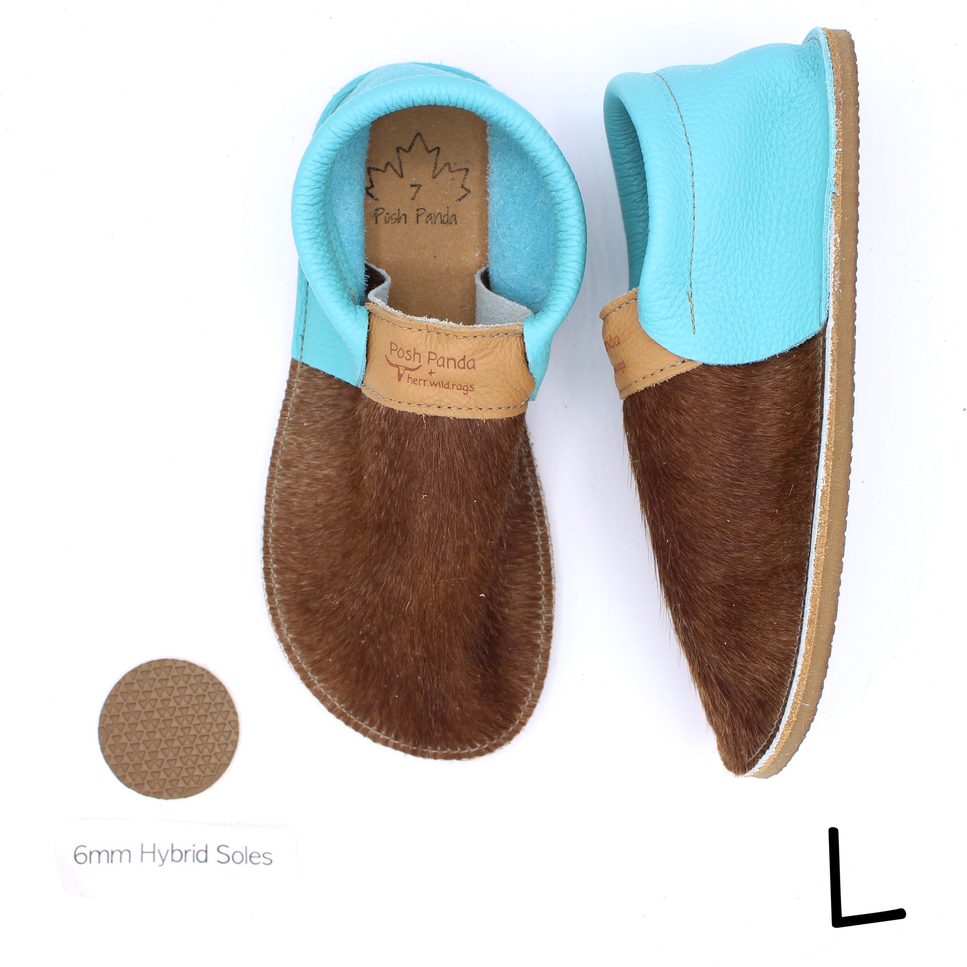 Adult Mocs are made with leather insoles as well as an added base layer of 4mm or 6mm rubber for extra grip and support.