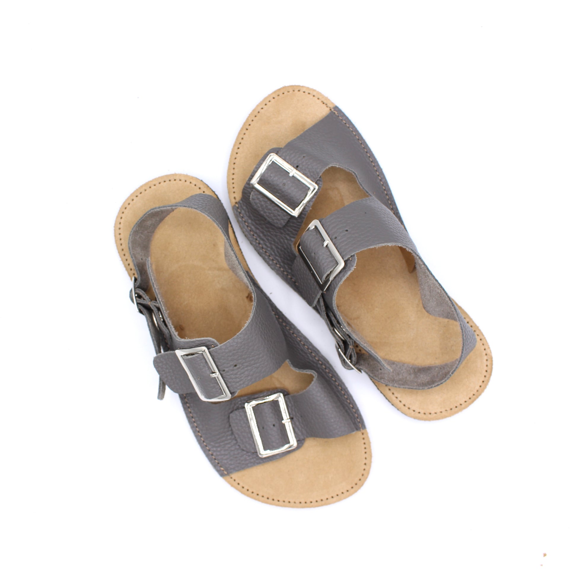 Ladies Buckle Sandals - SHADOW GREY - -Silver Buckles - 6mm Black Hybrid Soles - Snaps