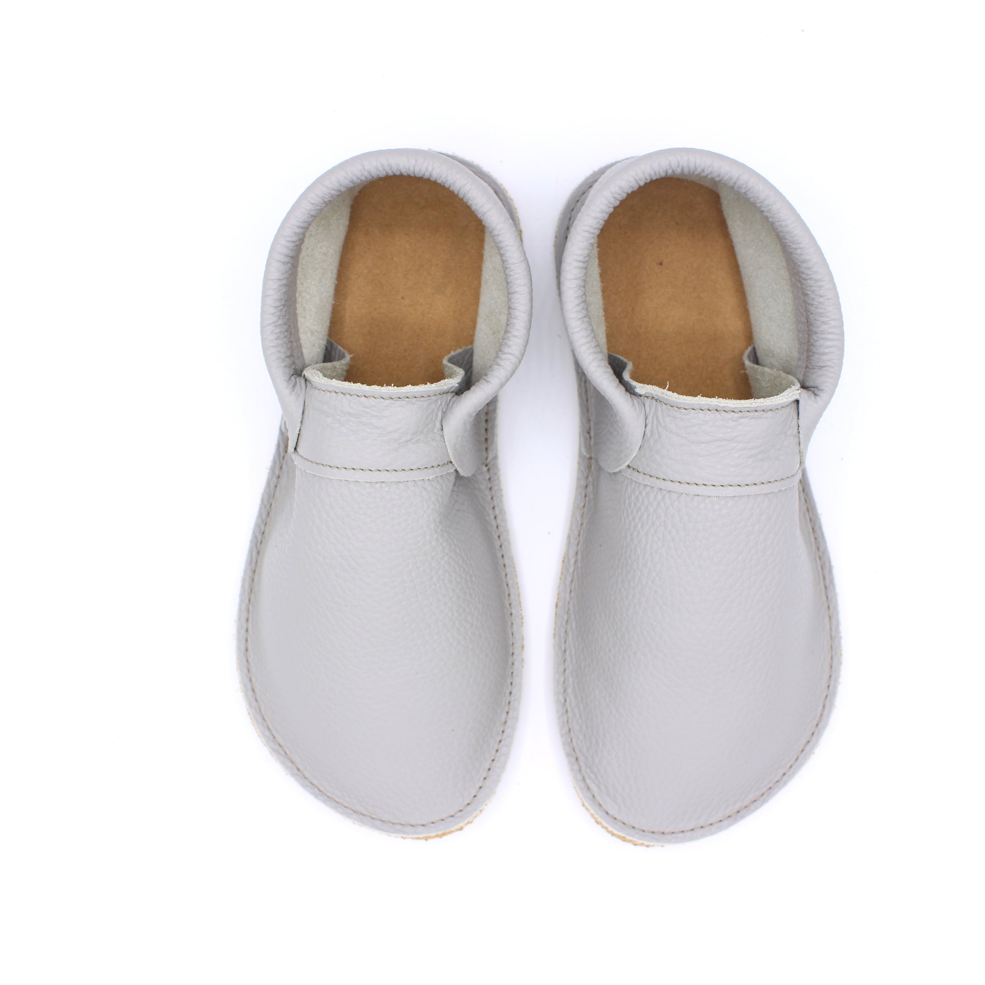 Ash Grey Leather: Is a pebble grain leather that is very soft and has a good amount of stretch to it. It is the perfect medium thickness that will hold its shape bit also stretch to your foot shape with little wear