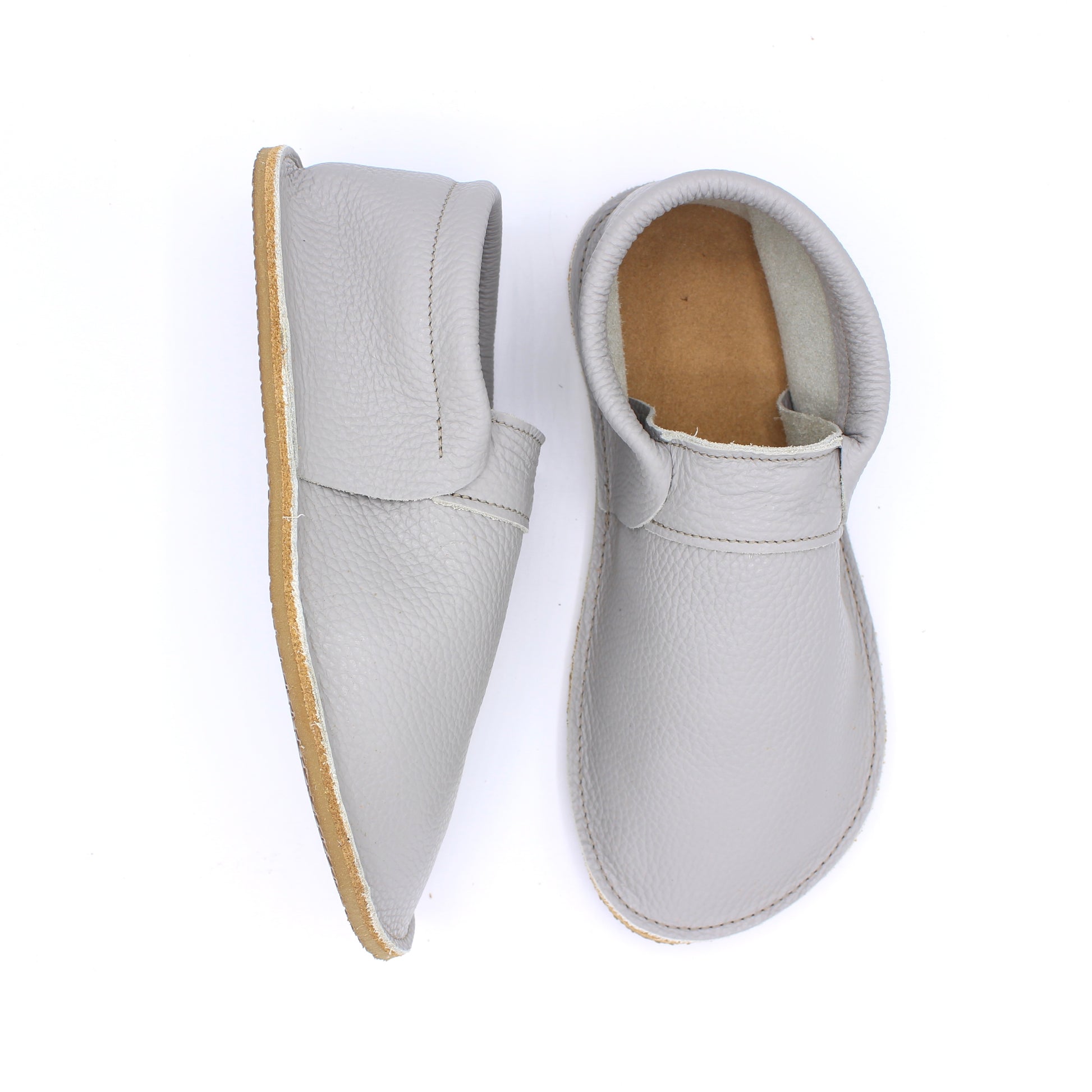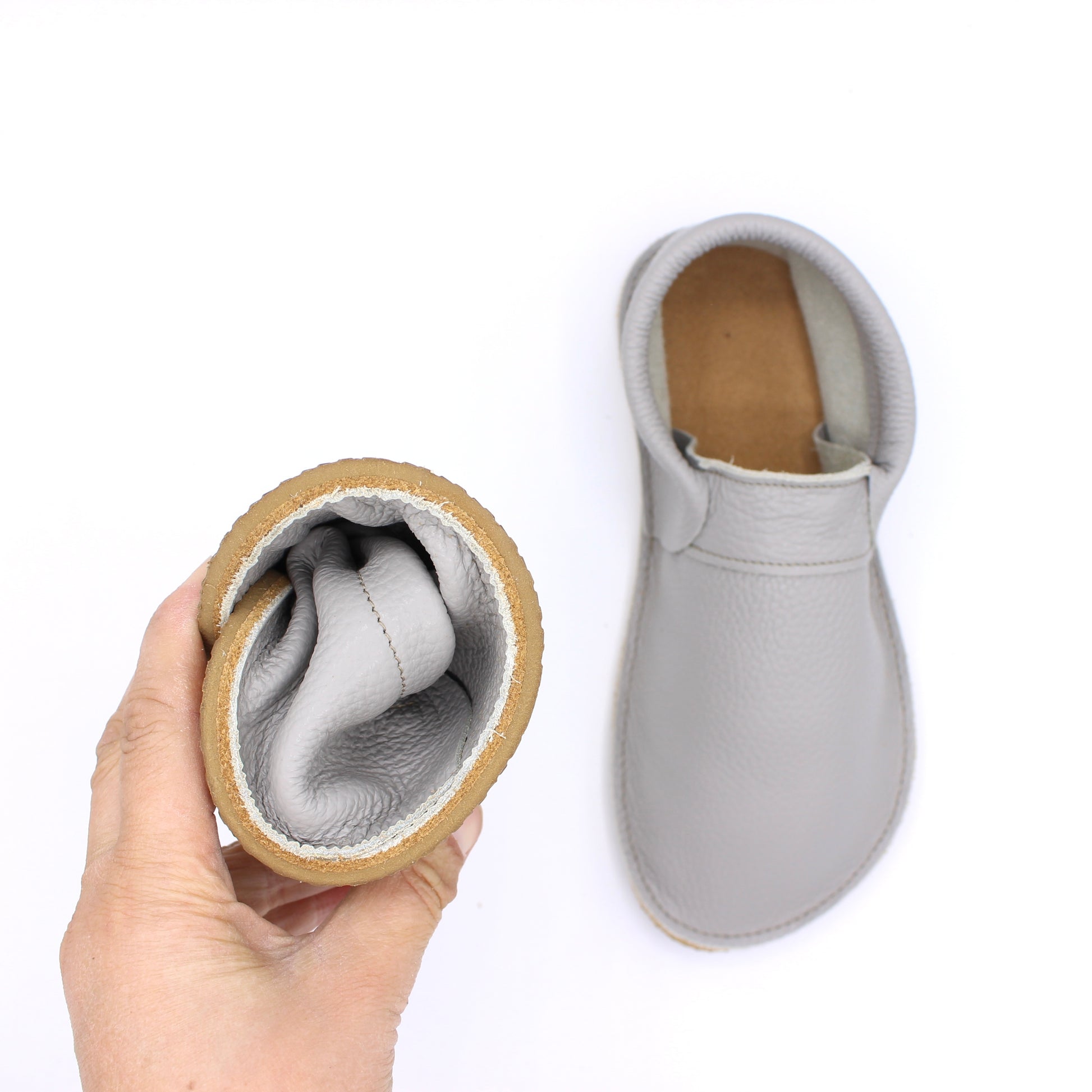 Ladies Fringeless Mocs - ASH GREY - 4mm Caramel Hybrid Soles