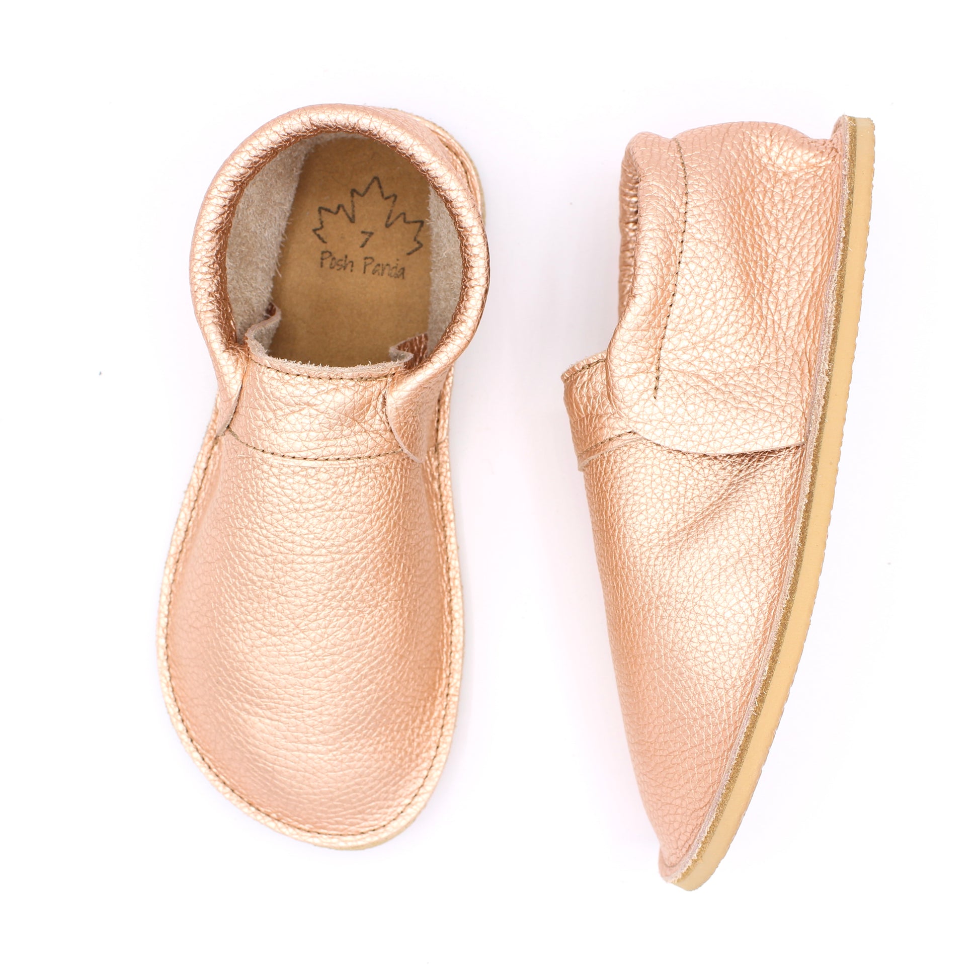 Ladies Fringeless Mocs - Rose Gold - 6mm Beige Hybrid Soles