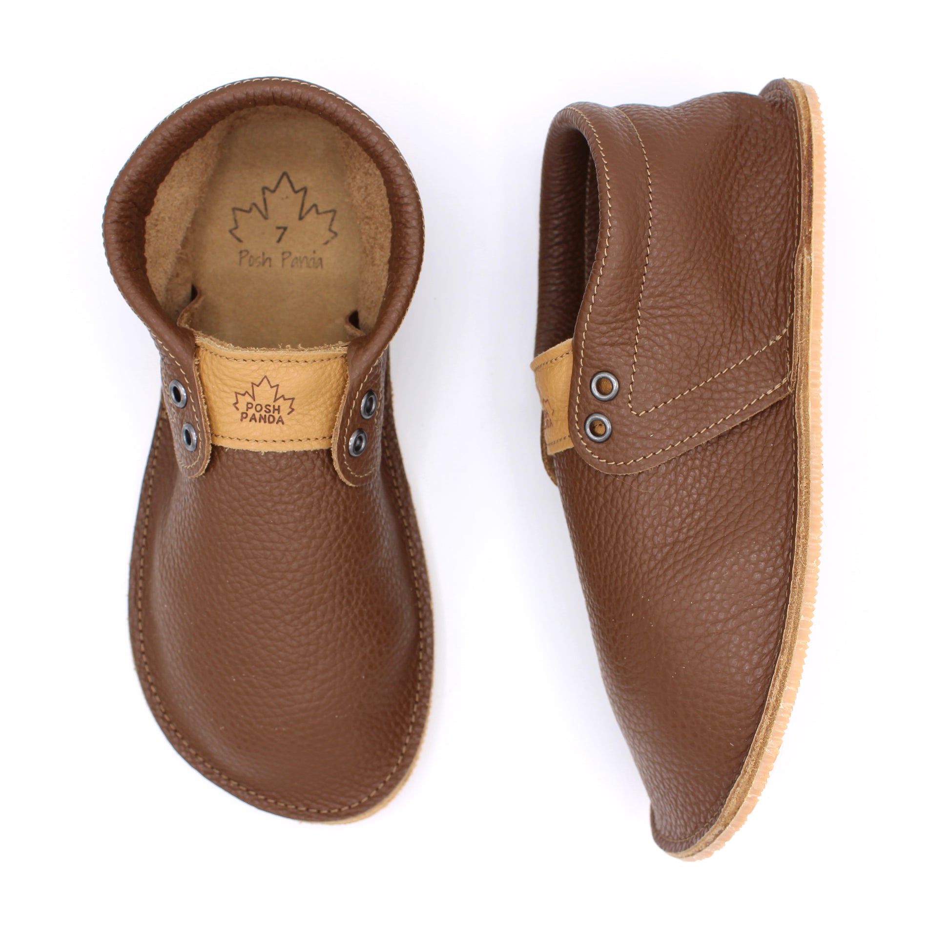 Adult Mocs are made with leather insoles as well as an added base layer of 4mm rubber for extra grip and support.