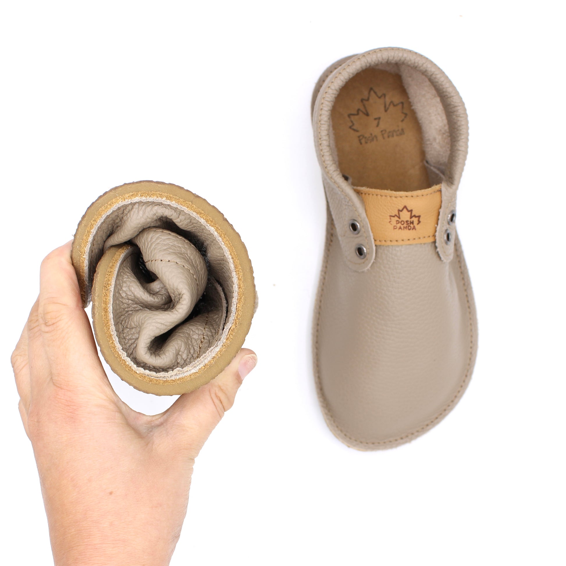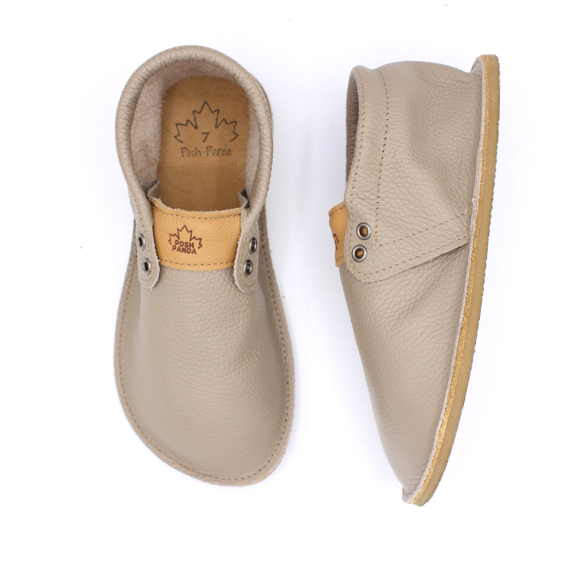 Adult Mocs are made with leather insoles as well as an added base layer of rubber for extra grip and support.