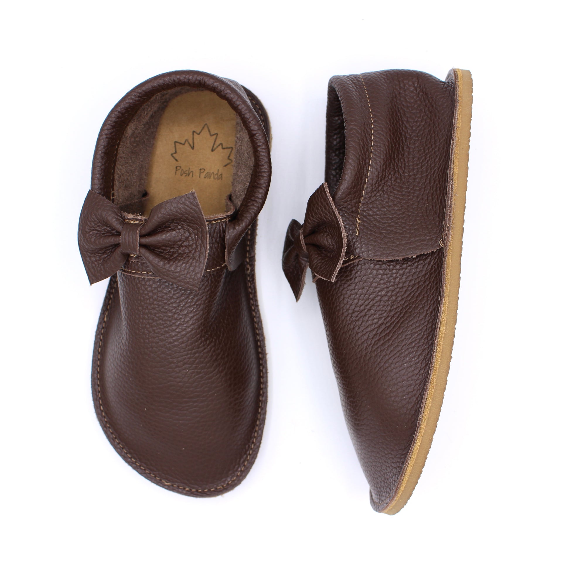 Adult Mocs are made with leather insoles as well as an added base layer of rubber for extra grip and support.