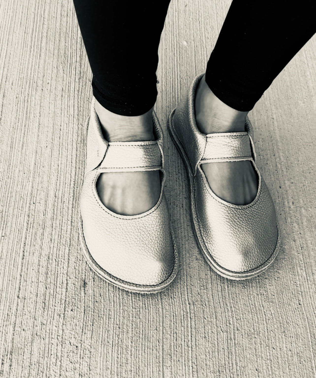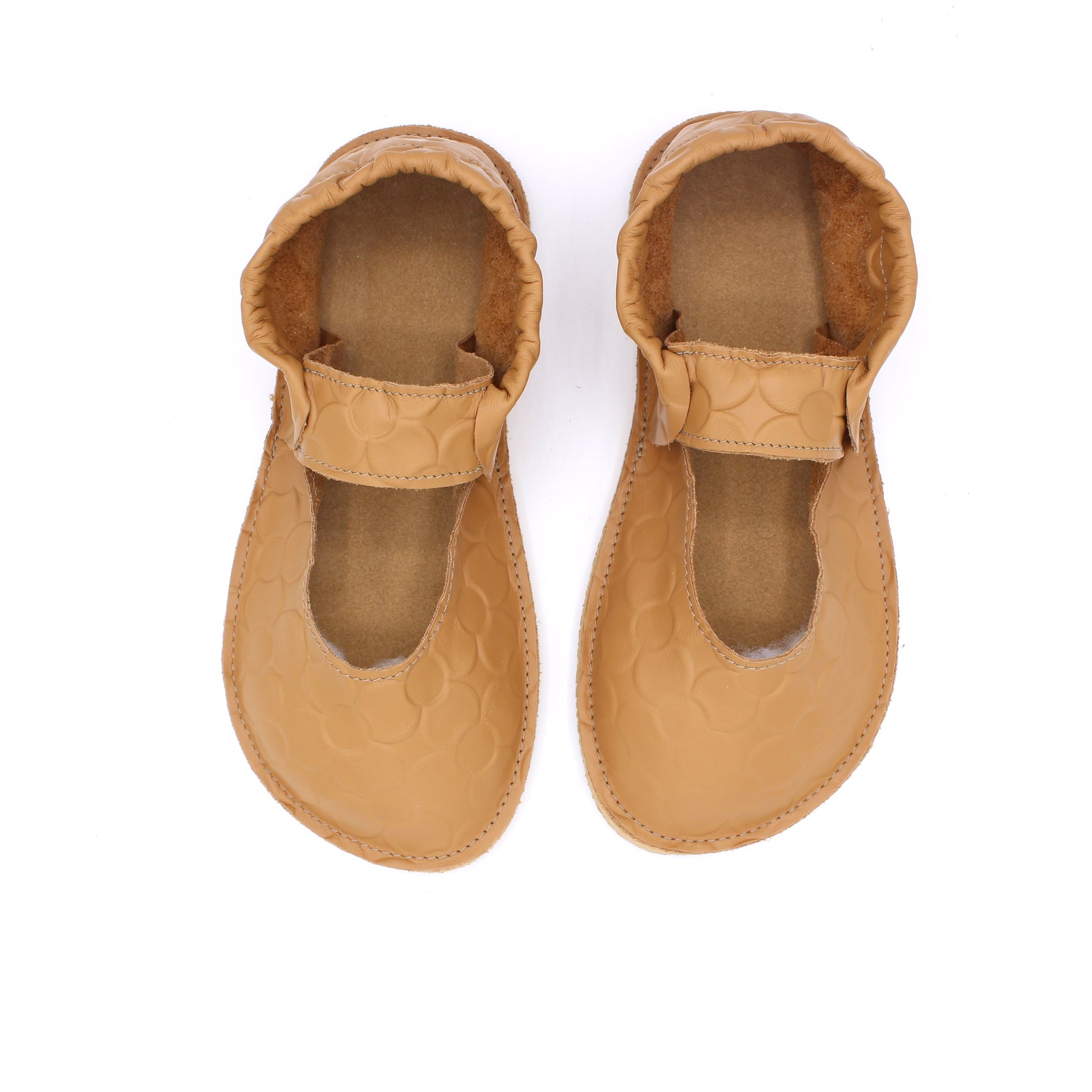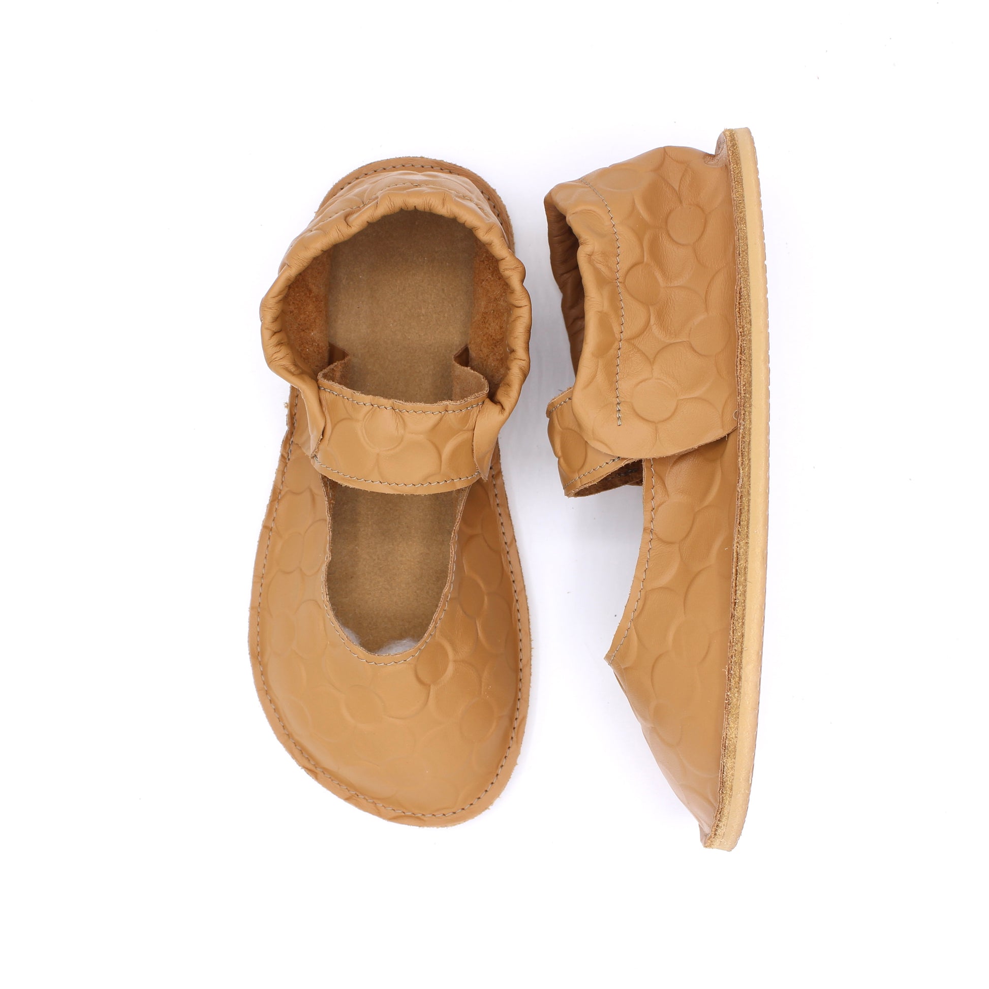 Ladies Mary Jane Mocs - TAN DAISY - 6mm Beige Hybrid Soles