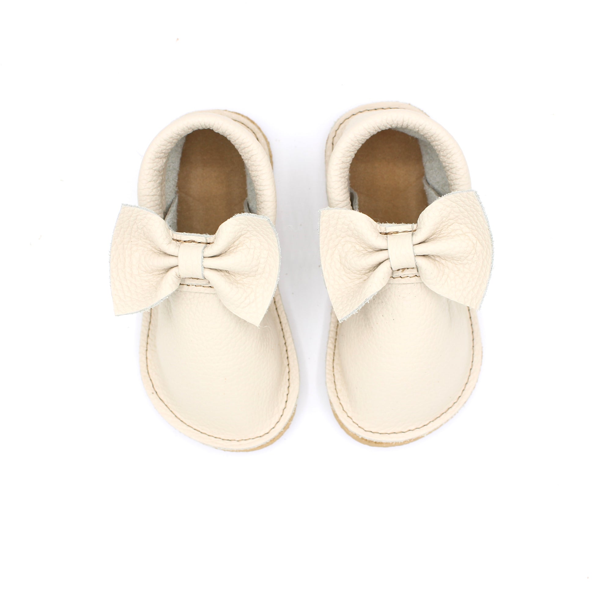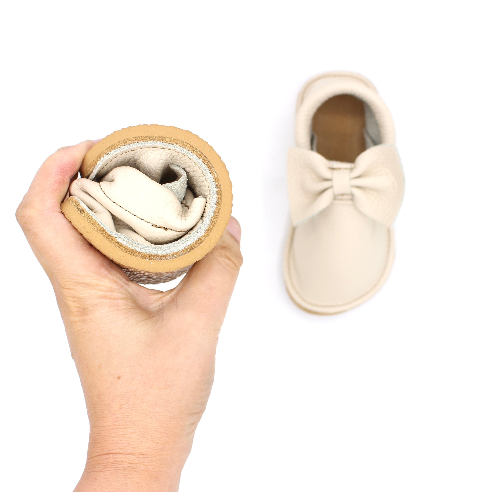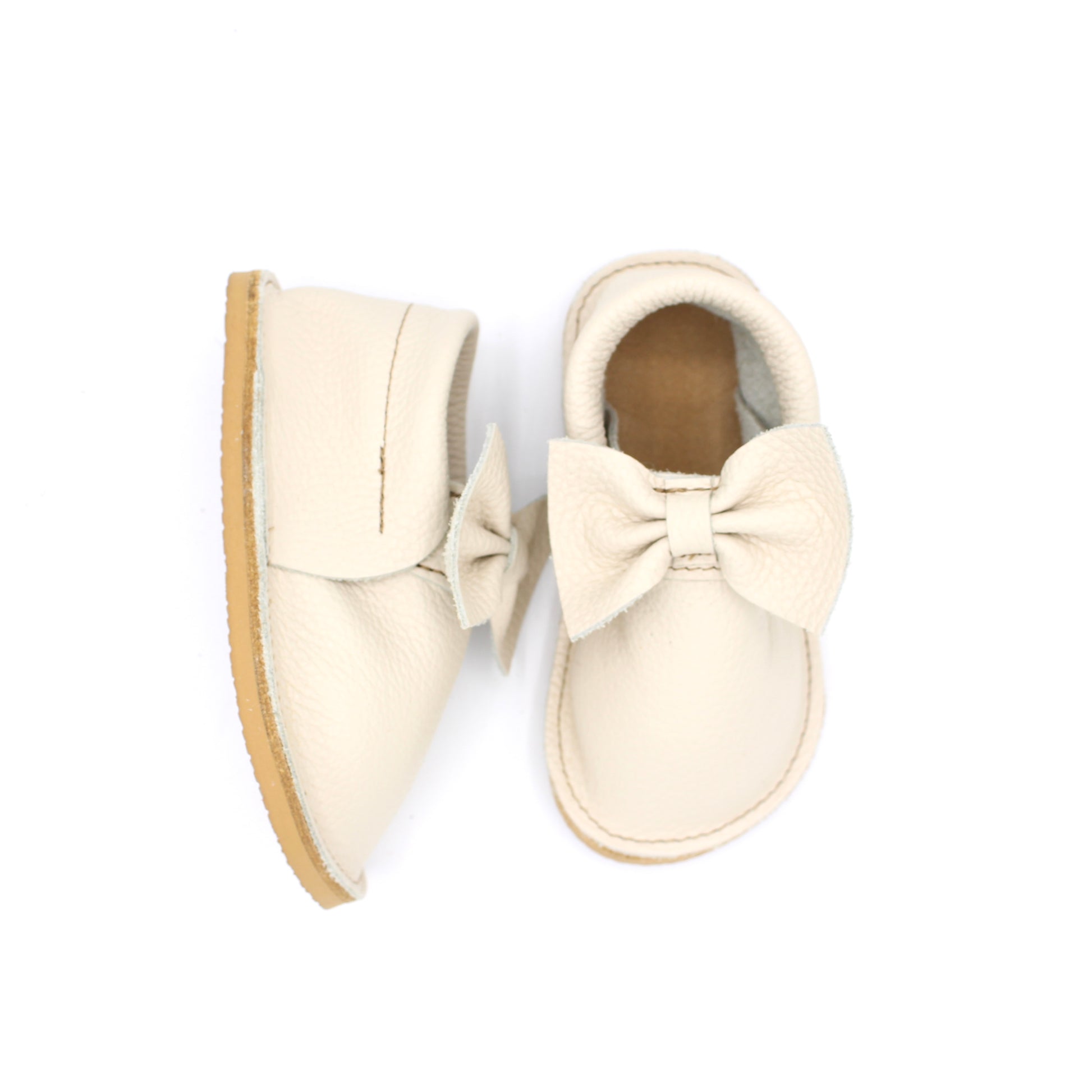 TODDLER Bow Mocs - Coconut - 6mm Beige Hybrid Soles